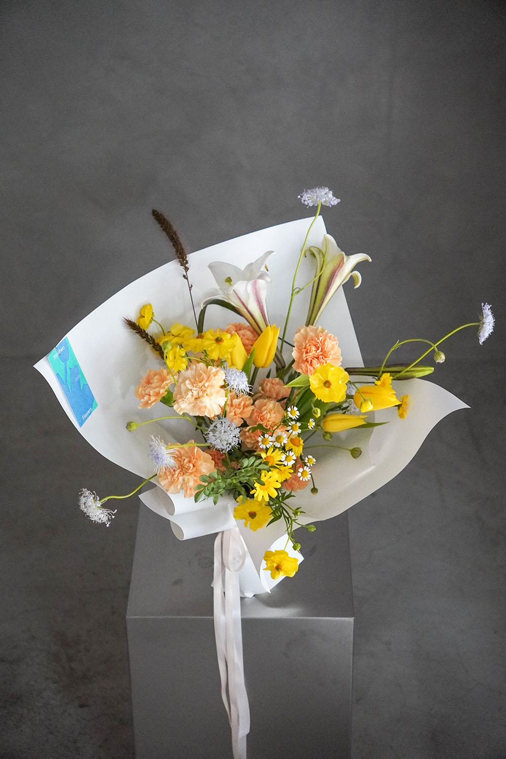 如遇缺色、當週花品質不佳會以其他同等級花材替代